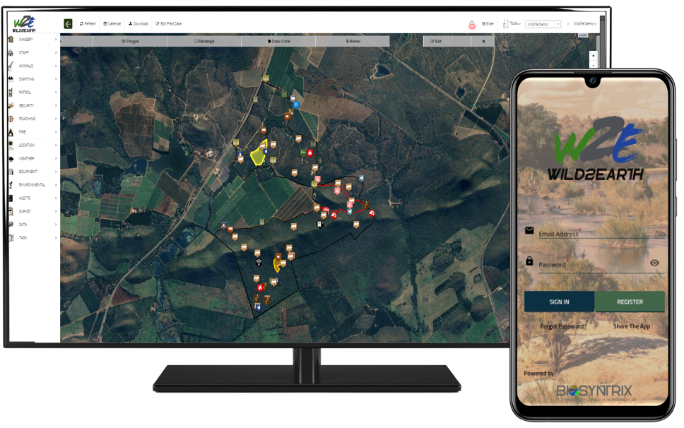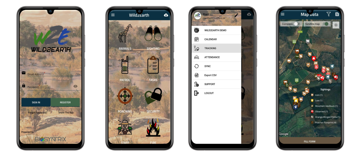 Wild2Earth's mobile application streamlines the data collection process, offering real-time, paperless management of wildlife and farms. The application is highly customizable to meet the specific needs of each user and is linked to a web dashboard for displaying collected data and generating reports. Access to the mobile app is restricted to registered users of the web portal, ensuring secure and tailored functionality.